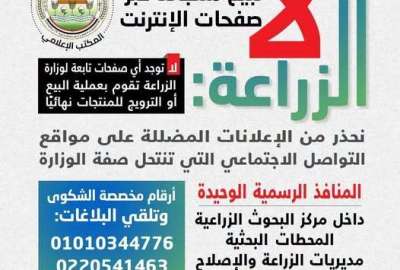 الزراعة تُحذر المواطنين من الانسياق وراء "صفحات البيع الوهمية" على منصات التواصل الاجتماعي