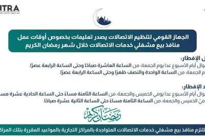 تنظيم الاتصالات يُعلن أوقات عمل منافذ بيع مشغلي الخدمات خلال شهر رمصان