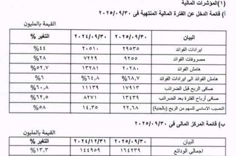 وارتفعت ايرادات الفوائد بالبنك إلى 29.54 مليار جنيه خلال أول 9 أشهر من 2025، مقابل 20.51 مليارًا خلال أول 9 أشهر من 2024، لتسجل نموًا بمعدل 44% وتحقق زيادة بقيمة 9.03 مليار جنيه.