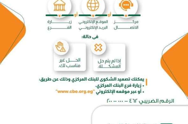 وحدد أنه في حالة إذا لم يتم حل المشكلة أو تقديم حلول غير مناسبة للعميل، يمكنك تصعيد الشكوي للبنك المركزي المصري عبر زيارة فرع البنك المركزي أو عبر موقعه الالكتروني www.cbc.eg