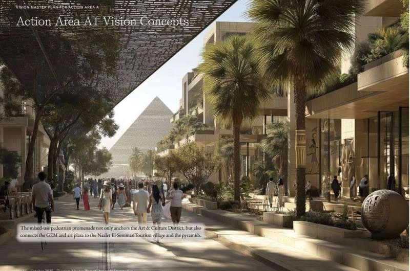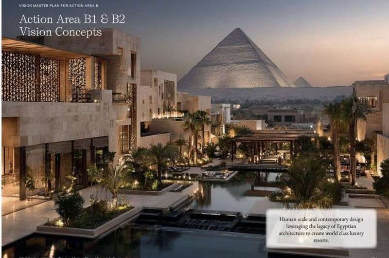 المخطط الجديد يشمل إعادة تخطيط الأراضي الاستثمارية الواقعة بتلك المنطقة، وتقسيم المساحات حسب المشروعات المستهدف تنفيذها، وهذا ما جعل الحكومة تتعاقد مع مكتب استشاري عالمي وهو WATG وعدد من المكاتب المصرية لوضع الفكرة والرية العامة لتطوير منطقة الأهرامات والمتحف الكبير، لتبدأ من مطار سفنكس وحتى منطقة سقارة، هذا بالإضافة إلى وضع خطة لتطوير منطقة نزلة السمان في ظل استبعاد إزالتها، مع إمكانية طرح مجموعة من الفرص الاستثمارية الخاصة بالأنشطة الفندقية والخدمية والترفيهية.