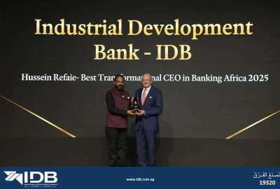 تُوج حسين رفاعي الرئيس التنفيذي والعضو المنتدب لبنك التنمية الصناعية بجائزة “Best Transformational CEO in Banking – Africa 2025”، الصادرة عن مؤسسة International Business Magazine العالمية، وذلك تقديرًا لمسيرته القيادية وإنجازاته في مجال التحول والتطوير المؤسسي، من خلال رؤية واضحة واستراتيجيات فعّالة للتغيير.