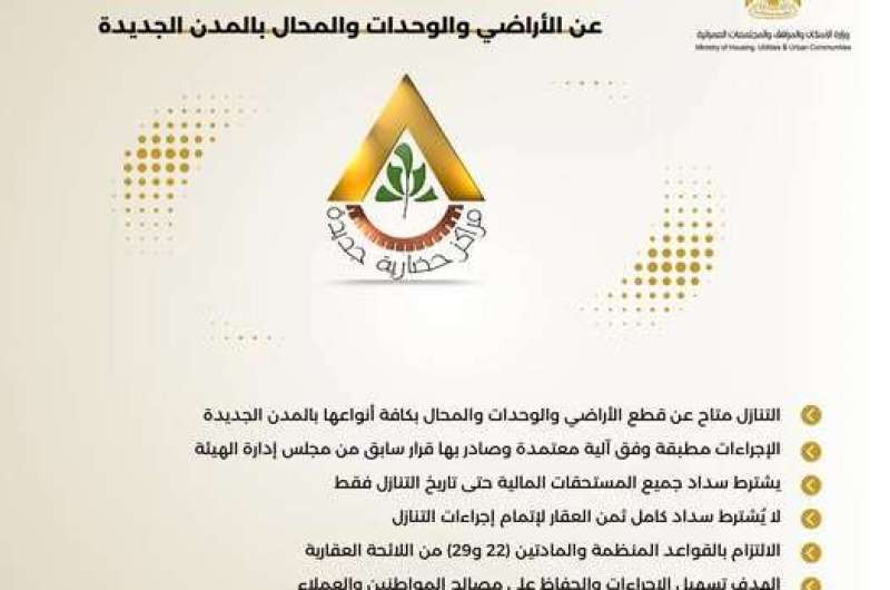 أعلن قطاع الشئون العقارية والتجارية للهيئة أنه بناءاً على تساؤلات السادة العملاء بشأن آلية إتمام إجراءات التنازل فى ضوء المخصص لهم من قطع الأراضي والوحدات والمحلات بكافة أنواعها بأجهزة المدن داخل هيئة المجتمعات العمرانيه الجديدة.