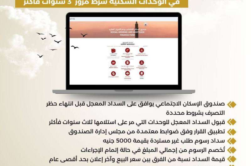 اشترط صندوق الإسكان الاجتماعي ودعم التمويل العقاري بأن يقبل السداد المُعجل لوحدات الإسكان الاجتماعي حال مرور 3 سنوات علي عملية التسليم، وأن ما يخالف ذلك لم يتم التعامل مع وحدته، كما أكد أنه سيتم قبول طلبات المخالفين لبيع الوحدة وفق شروط خاصة مع سداد 80% من الفارق للمخالفات للبيع قبل مرور 3 سنوات.