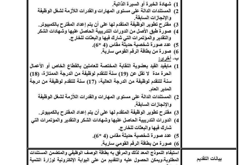 وأوضحت الوزيرة أنه سيتم فتح باب التقديم الإلكتروني لمدة شهر كامل، وذلك وفقًا للضوابط والقواعد المنصوص عليها في قانون الخدمة المدنية رقم 81 لسنة 2016 ولائحته التنفيذية.