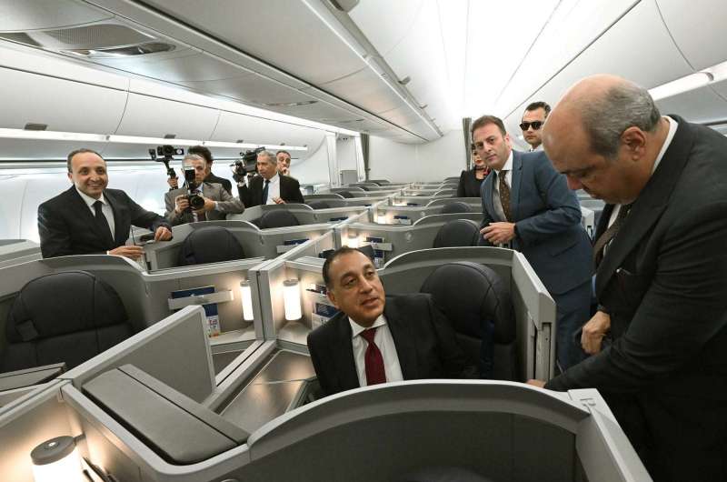 وأشار الوزير إلى أن الطائرة الجديدة تعمل باستخدام مزيج من وقود الطيران المستدام (SAF)، بما يحد من الانبعاثات الكربونية ويعزز جهود مصر في حماية البيئة، موضحاً أنها تتميز أيضا بتجهيزات تكنولوجية متطورة، حيث أصبحت "مصر للطيران" أول ناقل في أفريقيا يختار نظام Astrova من شركة Panasonic Avionics، الذي يوفر تجربة ترفيهية متكاملة عبر شاشات OLED بدقة 4K، وتقنية بلوتوث للصوت، وخاصية الشحن السريع عبر منفذ USB-C، إلى جانب خدمات اتصال بالإنترنت عالية السرعة طوال الرحلة.