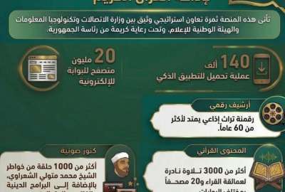 هذا وقد سخرت وزارة الاتصالات وتكنولوجيا المعلومات كافة إمكاناتها الفنية لإنشاء منصة رقمية متكاملة قادرة على استيعاب أرشيف يمتد لأكثر من 60 عاماً، وقد شملت جهود الوزارة في عملية الإنشاء برمجة تطبيق ذكي يتيح الوصول لأكثر من 3000 تلاوة نادرة لكبار القراء وأكثر من 20 مصحفاً كاملاً بمختلف الروايات والتعاون في تحويل الكنوز الصوتية، ومنها أكثر من 1000 حلقة لخواطر الشيخ الشعراوي فضلا عن مكتبة ثرية من البرامج الدينية والفتاوى والابتهالات.