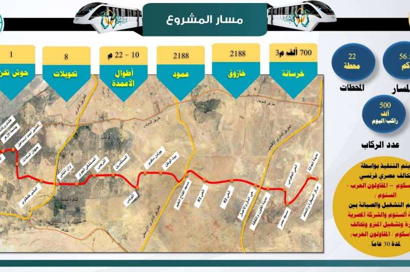 ويقدم المشروع خدماته بداية من إستاد القاهرة وجامعة الأزهر والمترددين عليهم بمدينة نصر والعديد من المدارس والجامعات وكذلك المساجد مثل (المشير طنطاوى – الفتاح العليم – مصر) كما يخدم المستشفيات (دار الفؤاد – الجوى التخصصى) وكبرى التجمعات التجارية والمولات كما يخدم منطقة حي المال والأعمال وكذلك الحي الحكومي بالعاصمة الجديدة والعديد من التجمعات السكنية الجديدة والنوادى ، موضحا أن المشروع يشتمل على عدد 40 قطار بسرعة تشغيلية "80 (كم/ساعة) على أن يشتمل القطار على 4 عربات لخدمة التوسعات العمرانية لمنطقة العاصمة الجديدة وزيادة عدد المترددين عليها يومياً .