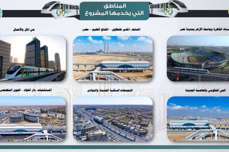 وتابع: يتميز المونوريل بتنفيذه على مسار علوي بالجزيرة الوسطى بالشوارع التي يمر بها ولا يشغل أي أجزاء من الشارع الأمر الذي يعني عدم تاثر حركة المرور بهذه الشوارع، مضيفًا أن قطارات المونوريل تتميز بأنها تعمل بدون سائق وأن زمن التقاطرسيصل إلى 3 دقائق ومن المخطط أن يصل إلي 90 ثانية مع زيادة حجم الطلب، كما يستغرق زمن الرحلة من استاد القاهرة حتى (العاصمة الجديدة) حوالي 70 دقيقة.
