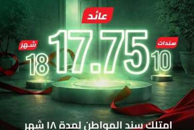 ويقدم الإصدار عائدًا سنويًا ثابتًا يصل إلى 17.75% يُصرف شهريًا، لمدة استثمار تمتد إلى 18 شهرًا، بما يتيح للمواطنين تحقيق دخل دوري ثابت من مدخراتهم.