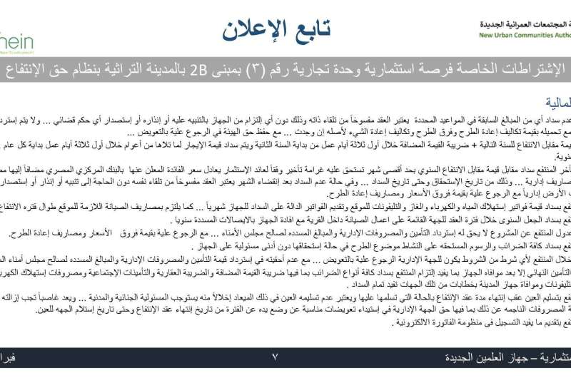 أعلن الدكتور مهندس محمد خلف الله، رئيس جهاز مدينة العلمين الجديدة والمشرف على جهاز القرى السياحية، عن طرح عدد من الفرص الاستثمارية داخل المدينة التراثية بنظام "حق الانتفاع"، وذلك بنظام العروض (الفنية + المالية)، في خطوة تعكس بدء مرحلة جديدة من تنشيط الاستثمار داخل أحد أهم المشروعات الحضارية بمدينة العلمين الجديدة.
