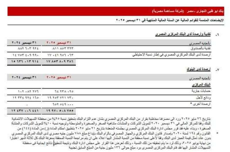 قرر البنك المركزي المصري إلزام بنك أبوظبي التجاري مصر ADCB بإيداع مبلغ 788 مليون جنيه دون عائد، وذلك نتيجة وجود عجز في الالتزام بالنسبة الإلزامية المقررة لتمويل المشروعات متناهية الصغر والصغيرة والمتوسطة.