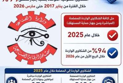 وأكد أمين أن هذه المؤشرات تأتي في إطار جهود المصلحة لتعزيز منظومة الرقابة على المصانع ومراكز الصيانة حيث تعتبر المصلحة الجهة المنوط بها حفظ حقوق المستهلكين وتحقيق الانضباط في الأسواق وذلك من خلال التحقيق الفني الدقيق للمنتجات محل الشكوى للتأكد من مطابقتها للمواصفات القياسية المصرية، واتخاذ الإجراءات القانونية ضد المخالفين، والرقابة على خدمات ما بعد البيع التي تشمل الصيانة والضمان، فضلاً عن التنسيق المشترك باعتبارها حلقة الوصل الرقابية بين المواطن ومختلف أجهزة الدولة لضمان سرعة الاستجابة وحل الشكاوى بما يعيد للمتضرر حقه ويعزز الثقة في المنتج المحلي.