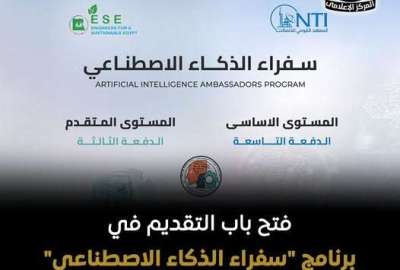 أعلن المعهد القومي للاتصالات، بالتعاون مع مؤسسة مهندسون من أجل مصر المستدامة، عن فتح باب التقديم في برنامج "سفراء الذكاء الاصطناعي"، والذي يهدف إلى تأهيل غير المتخصصين لاستخدام تقنيات الذكاء الاصطناعي في بيئات العمل المختلفة. ويُقدم التدريب مجانًا بالكامل عبر الإنترنت.