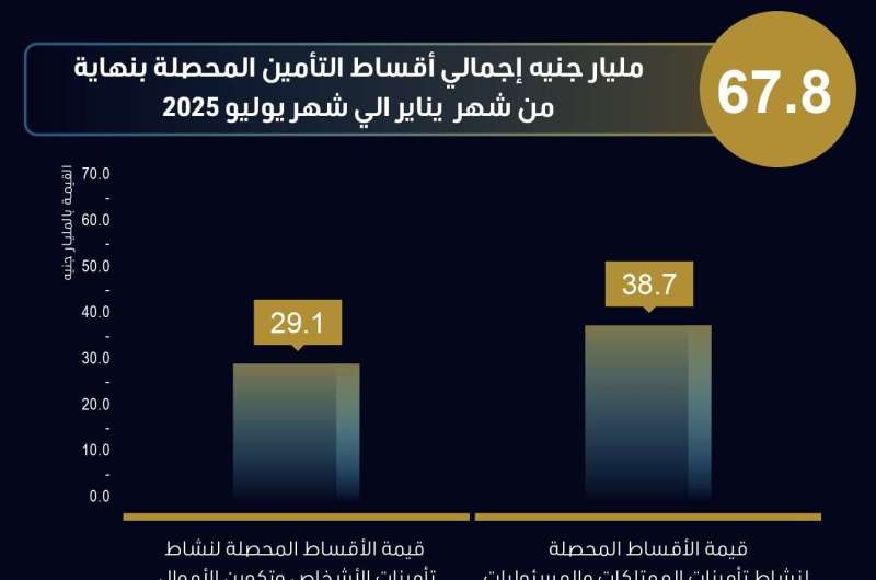 أظهرت أحدث التقارير الصادرة من الهيئة العامة للرقابة المالية عن شهر يوليو لعام 2025 بالنسبة لقطاع التأمين أن قيمة إجمالي أقساط التأمين 67.8 مليار جنيه، وحيث بلغت قيمة الأقساط المحصلة لنشاط التأمينات الممتلكات والمسئوليات 38.7 مليار جنيه، فيما سجلت قيمة الأقساط المحصلة لنشاط تأمينات الأشخاص وتكوين الأموال 29.1 مليار جنيه في شهر يوليو 2025.